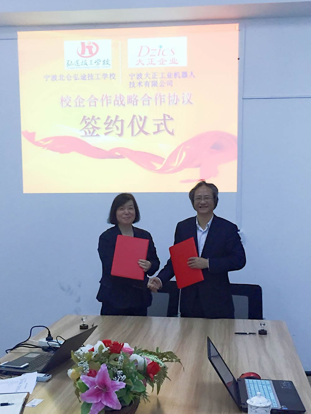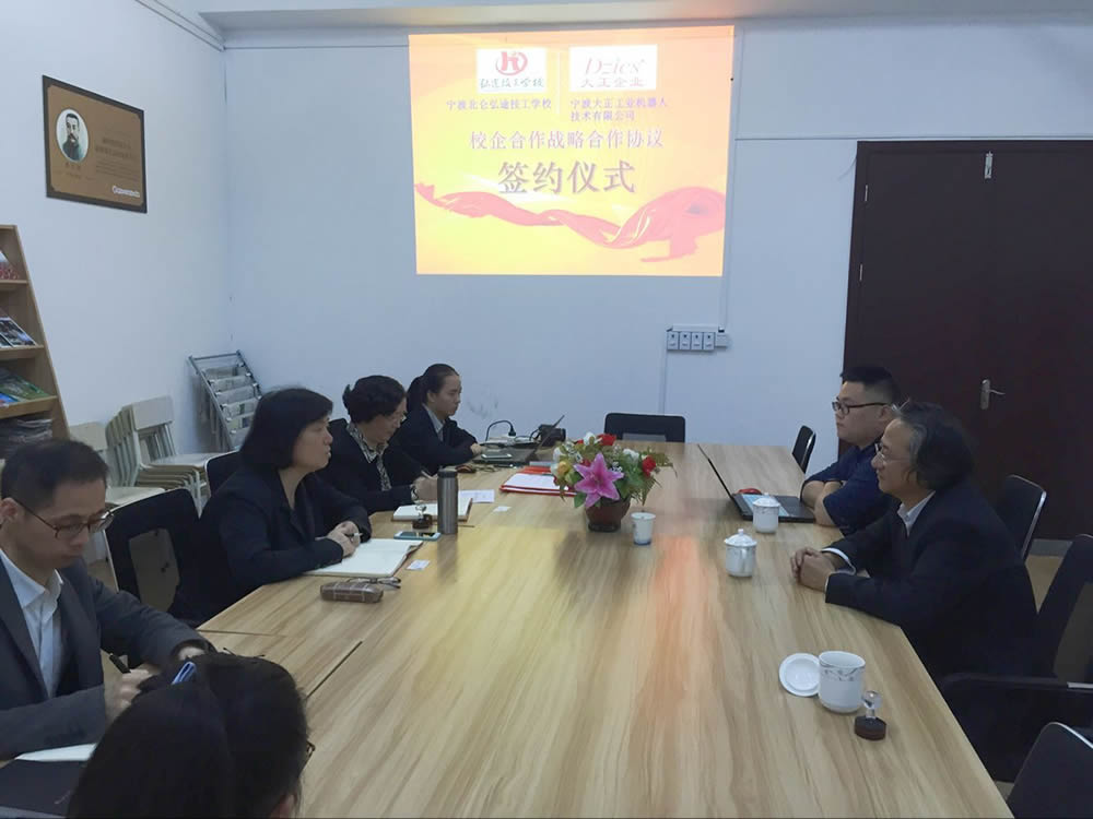 宁波乐鱼工业机器人技术有限公司与北仑弘途技工学校签订校企合作协议